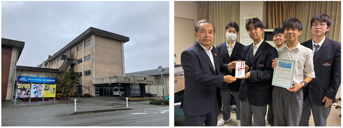 富山県新川高校は以前より富山湾で養殖したがごめ昆布を使った新商品開発を実施しています。今回、この活動を実施しているコミュニティビジネス部が、がごめ昆布を使った新商品で北信越グランプリコンテスト(2026年2月に金沢で開催)に出場する事が決定し、それを支援する為、「気候変動」と「富山湾」に関して、12月9日(火)の放課後に意見交換を実施すると共に、がごめ昆布の新商品開発を支援し、気候変動に貢献するブルーカーボン活動を更に拡げる為に寄附も実施致しました。(写真)